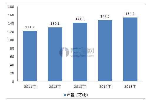 我國紡織印染助劑生產(chǎn)企業(yè),20世紀60年代初統(tǒng)計只有10余家,1992年統(tǒng)計約500家,1995年統(tǒng)計有千余家,現(xiàn)在有3000余家。據(jù)《2017-2022年中國印染助劑行業(yè)市場前瞻與投資戰(zhàn)略規(guī)劃分析報告》提供的數(shù)據(jù)顯示,2011-2015年,中國印染助劑行業(yè)生產(chǎn)規(guī)模呈現(xiàn)不斷增長的態(tài)勢,其中2015年產(chǎn)量為154.2萬噸。同比增長4.54%。